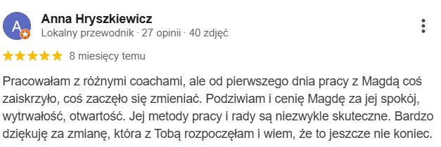 moje osobiste wsparcie i mentoring podczas każdego spotkania